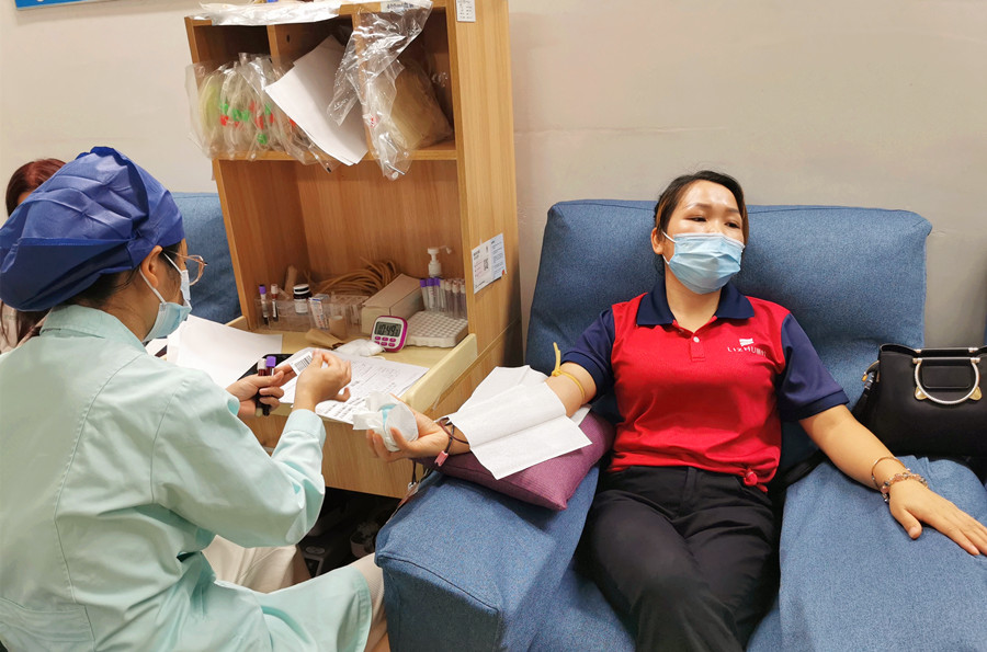 在獻血前,工作人員先耐心地為學員們介紹了獻血的好處,之后就開始有秩序地進行登記、填表、量血壓、測血型、檢查血樣,順利通過檢查后就分別開始進行采血。