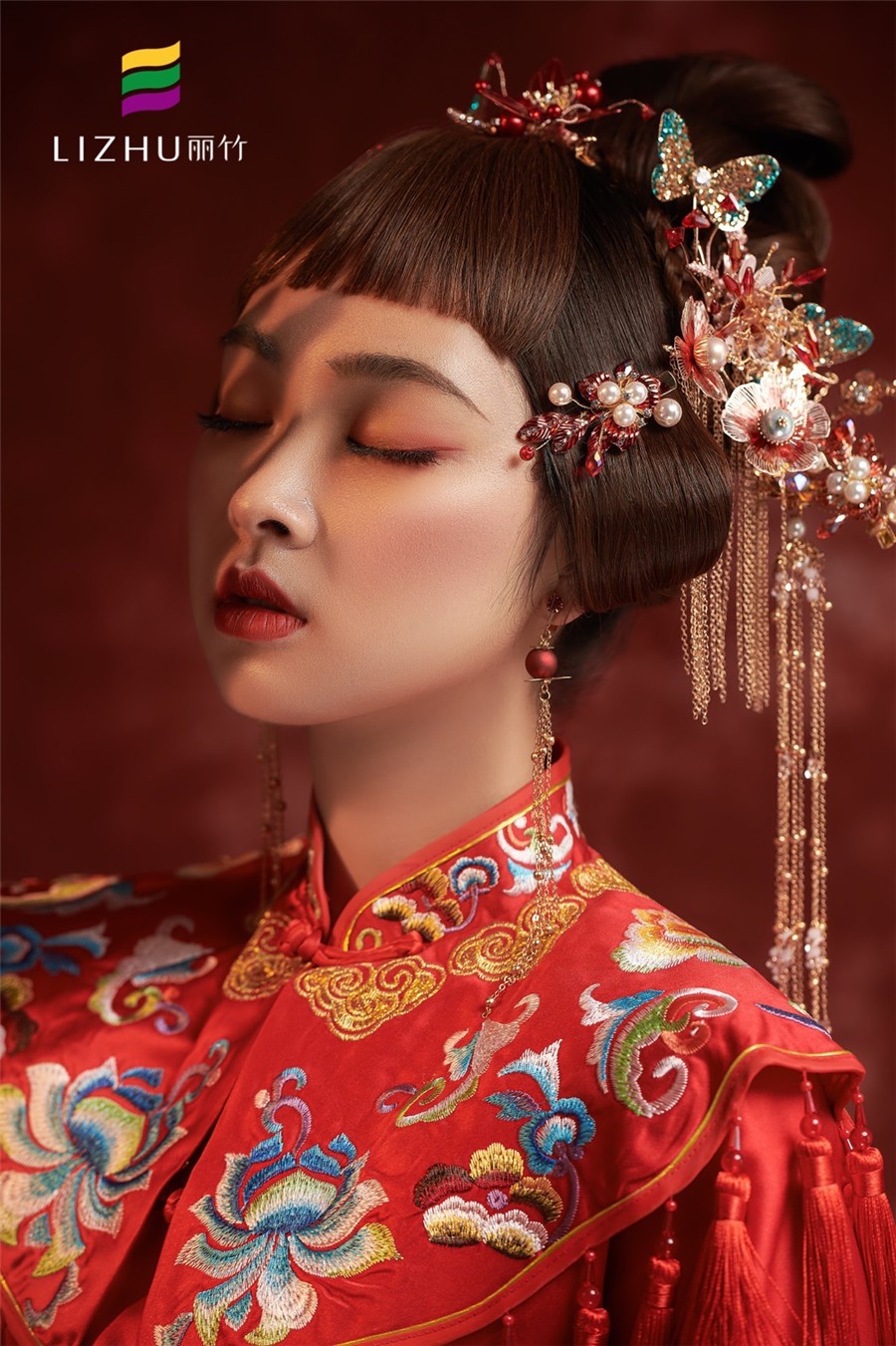 一襲中國紅,端莊典雅