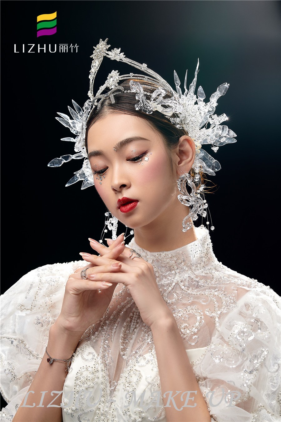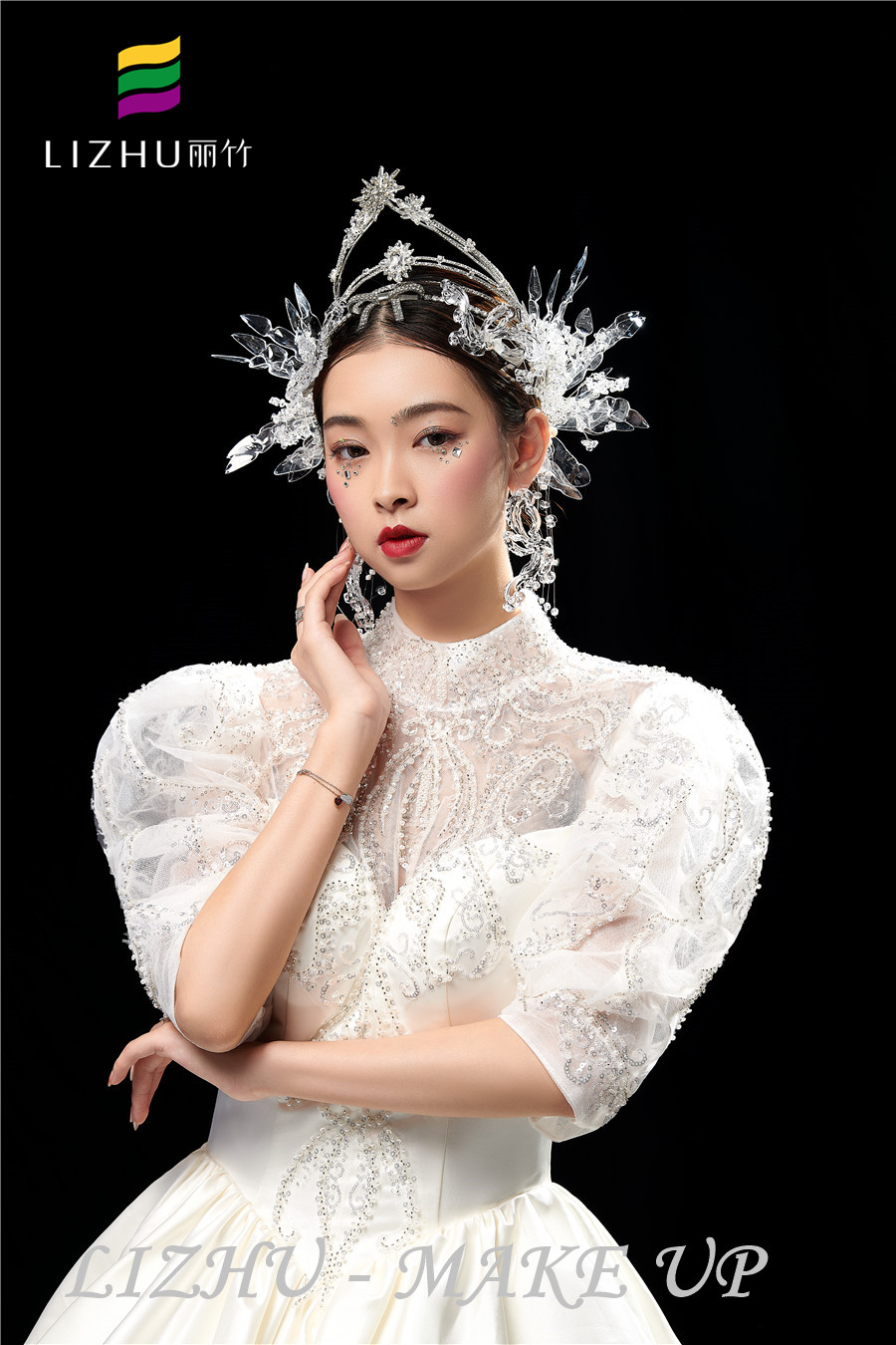 南寧彩妝師培訓(xùn)學(xué)校、南寧化妝學(xué)校短期培訓(xùn)班作品---輕奢鉆石新娘造型:,輕薄自然的底妝打造,亮片碎鉆點(diǎn)綴眼妝周邊,打造閃閃亮亮的奢華感,奢華水晶頭飾與重工禮服相呼應(yīng),好一個高奢精致美人。要問南寧哪家化妝學(xué)校比較熱門,請到南寧化妝彩妝培訓(xùn)學(xué)校(麗竹彩妝學(xué)校)去參觀試聽吧!