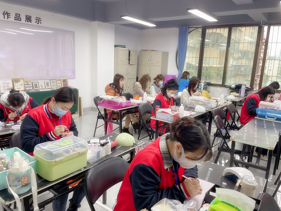 接下來,請(qǐng)跟隨南寧美甲造型培訓(xùn)學(xué)校的腳步,一起走進(jìn)南寧美甲進(jìn)修提升的教室里去看看同學(xué)們正在繪制的國風(fēng)美甲作品---青花·雅韻。