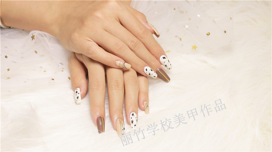 麗竹學(xué)校美甲作品:牛奶巧克力彩繪美甲