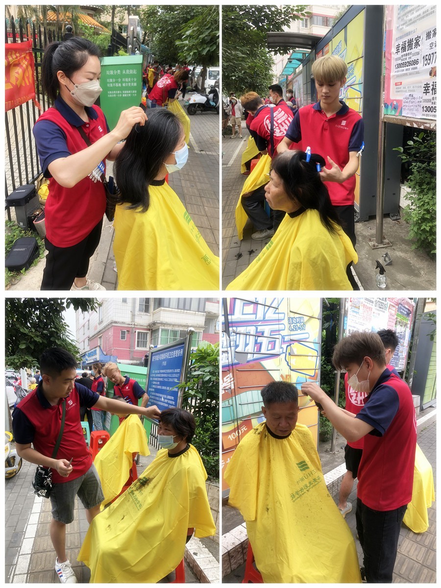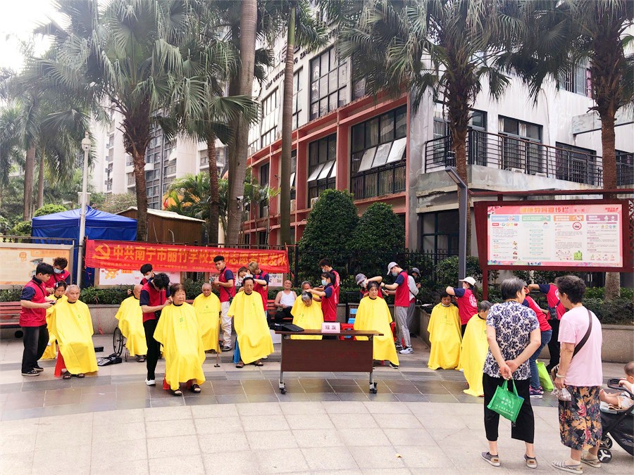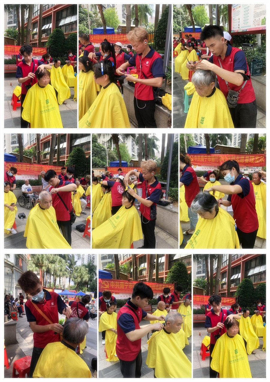2023年5月26日,南寧美發(fā)培訓(xùn)班志愿者們?yōu)榻先A府小區(qū)居民進行理發(fā)活動