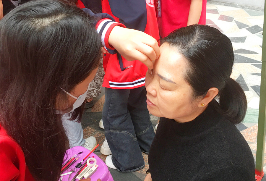 廣西化妝公益、廣西化妝社會(huì)實(shí)踐:乘著“學(xué)雷鋒月”的微風(fēng),廣西化妝師培訓(xùn)班的同學(xué)們?cè)谟窭蠋煹膸ьI(lǐng)下在學(xué)校門口進(jìn)行了免費(fèi)化妝暨外出實(shí)踐教學(xué)活動(dòng)。接下來(lái),就和我們一起看看廣西化妝學(xué)校外出教學(xué)(麗竹化妝學(xué)校)今天都都學(xué)習(xí)了哪些內(nèi)容吧!