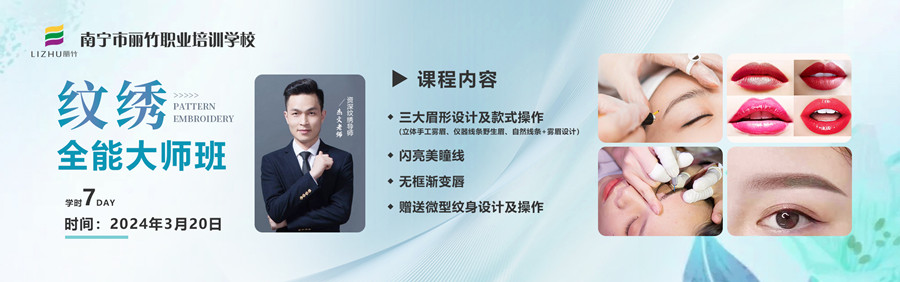 如果你想學(xué)習(xí)更全面的紋繡技術(shù),廣西眉眼唇技術(shù)學(xué)校-麗竹紋繡大師班將于3月20日開課,屆時行業(yè)紋繡導(dǎo)師將為大家?guī)砣滦袠I(yè)技術(shù)以及拓客技巧,學(xué)習(xí)名額正在火熱預(yù)訂中,想學(xué)習(xí)的你趕緊報名吧!