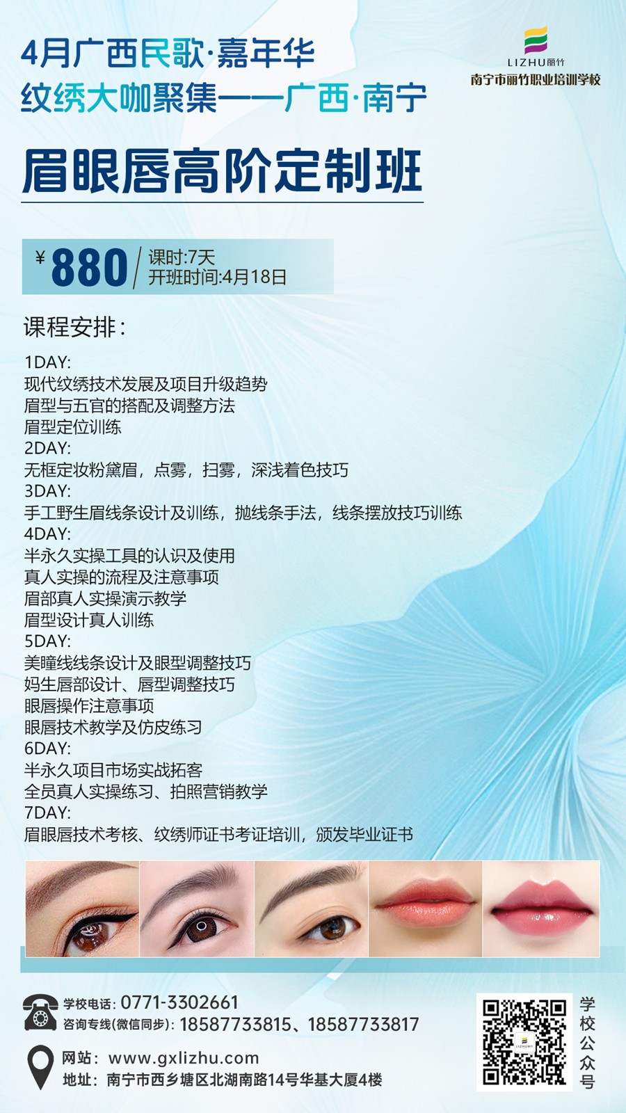 眉眼唇日益成熟的技術(shù),讓越來越多的人愿意去進(jìn)行項(xiàng)目操作,而現(xiàn)在廣西紋繡行業(yè)市場(chǎng)上出現(xiàn)的紋繡師供不應(yīng)求的缺口,也讓很多人看到眉眼唇技術(shù)背后隱藏的巨大流量。所以,如果你也想從中分得一杯羹,廣西紋繡學(xué)校推薦你可以到麗竹學(xué)校紋繡培訓(xùn)去參觀,試聽,了解課程,滿意之后在報(bào)名。
