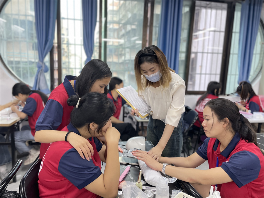 學(xué)員進行真人是操美甲款式練習(xí)